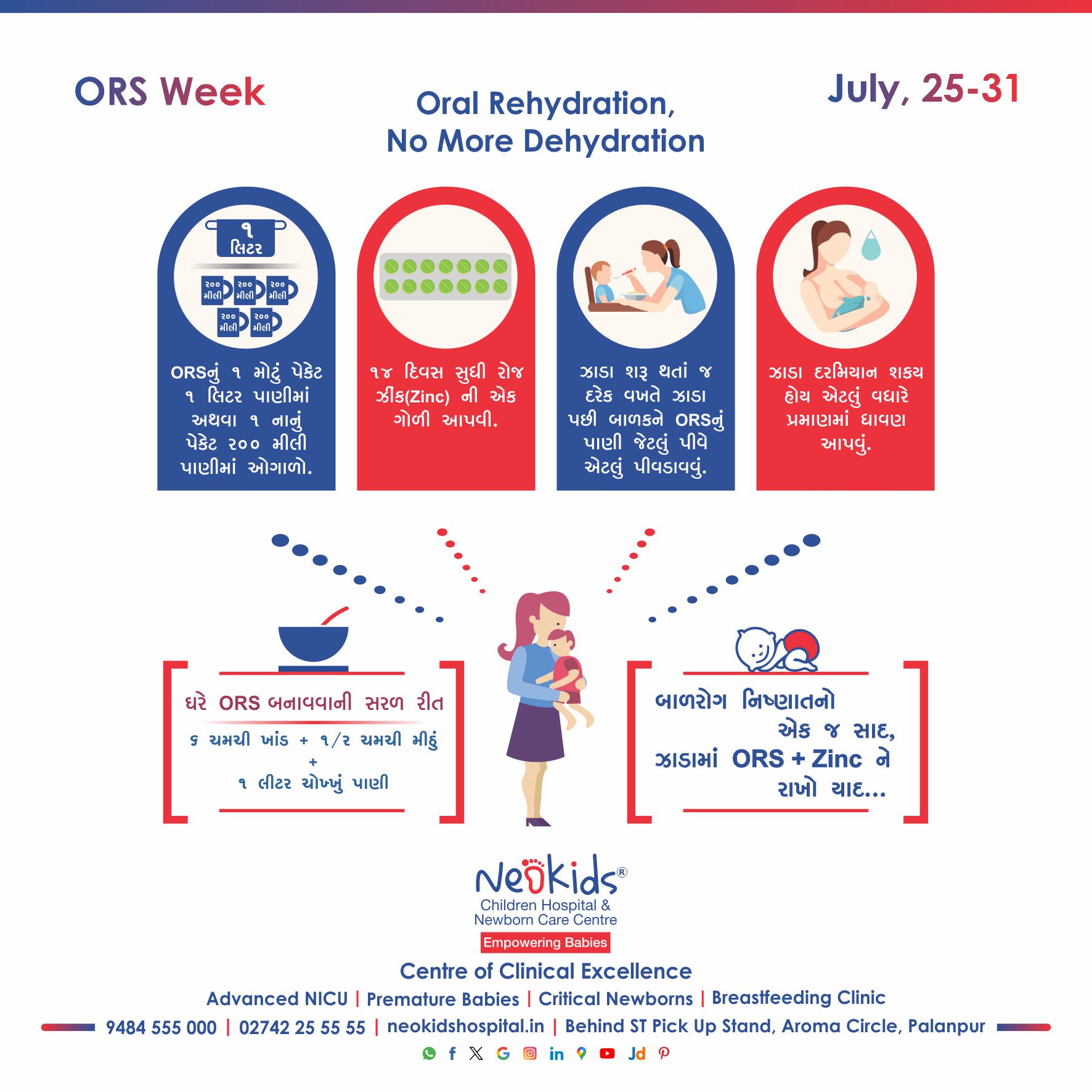 🗓️ ઓરલ રિહાઈડ્રેશન સોલ્ટ (ORS)ના મહત્વને આરોગ્યમાં ઓછા ખર્ચ અને અસરકારક ઉપાય તરીકે પ્રકાશિત કરવા માટે દર વર્ષે જુલાઈ 29ના રોજ ORS Day અને 25 થી 31 તારીખ સુધીના આખા અઠવાડિયાને ORS Week તરીકે ઉજવવામાં આવે છે.